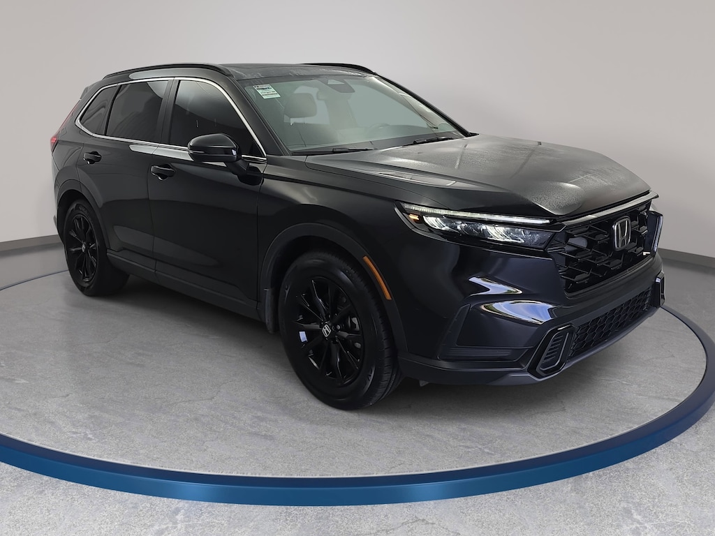 Clean CARFAX. CARFAX One-Owner. Certified. Crystal Black Pearl 2025 Honda CR-V Hybrid Sport FWD eCVT 2.0L I4 DOHC 16V 4-Wheel Disc Brakes, 6 Speakers, ABS brakes, Adaptive Cruise Control: Adaptive Cruise Control (ACC) with Low-Speed Follow, Air Conditioning, Apple CarPlay/Android Auto, Auto High-beam Headlights, Automatic temperature control, Blind Spot Information (BSI) System warning, Brake assist, Delay-off headlights, Dual front impact airbags, Dual front side impact airbags, Electronic Stability Control, Exterior Parking Camera Rear, Four wheel independent suspension, Front Bucket Seats, Front Center Armrest, Front dual zone A/C, Fully automatic headlights, Heated door mirrors, Heated Front Bucket Seats, Illuminated entry, Leather Shift Knob, Leather steering wheel, Occupant sensing airbag, Outside temperature display, Overhead airbag, Power door mirrors, Power driver seat, Power moonroof, Power steering, Power windows, Radio data system, Radio: 240-Watt AM/FM Audio System, Rear window defroster, Remote keyless entry, Speed control, Speed-sensing steering, Steering wheel mounted audio controls, Telescoping steering wheel, Tilt steering wheel, Traction control, Trip computer, Turn signal indicator mirrors, Wheels: 18" Berlina Black Alloy.