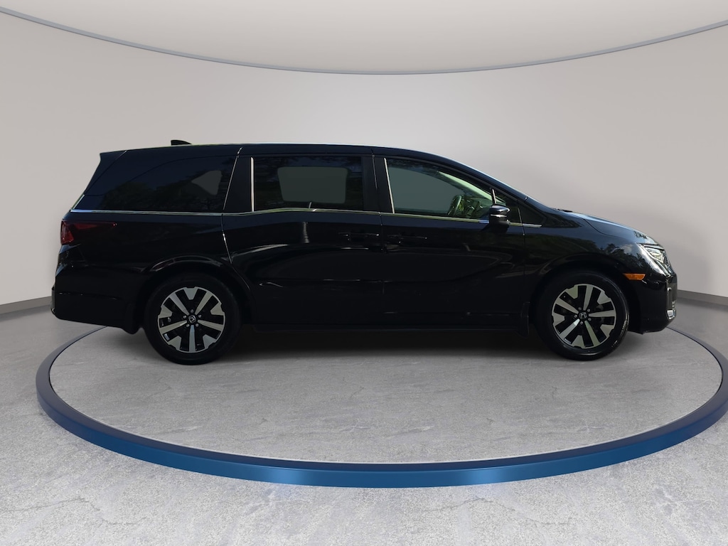 Clean CARFAX. CARFAX One-Owner. Certified. Crystal Black Pearl 2025 Honda Odyssey EX-L FWD 10-Speed Automatic 3.5L V6 SOHC i-VTEC 24V 18" Machine-Finished Alloy Wheels, 3rd row seats: split-bench, 4-Wheel Disc Brakes, 7 Speakers, ABS brakes, Adaptive Cruise Control: Adaptive Cruise Control (ACC) with Low-Speed Follow, Air Conditioning, Alloy wheels, AM/FM radio: SiriusXM, Anti-whiplash front head restraints, Apple CarPlay/Android Auto, Auto High-beam Headlights, Auto-dimming Rear-View mirror, Automatic temperature control, Blind Spot Information (BSI) System warning, Brake assist, Delay-off headlights, Dual front impact airbags, Dual front side impact airbags, Electronic Stability Control, Exterior Parking Camera Rear, Four wheel independent suspension, Front dual zone A/C, Front fog lights, Front reading lights, Fully automatic headlights, Garage door transmitter: HomeLink, Heated door mirrors, Heated Front Bucket Seats, Illuminated entry, Lane departure: Lane Keeping Assist System (LKAS) active, Leather steering wheel, Memory seat, Outside temperature display, Overhead console, Power door mirrors, Power driver seat, Power Liftgate, Power moonroof, Power steering, Power windows, Radio: 160-Watt AM/FM/HD/SiriusXM Audio System, Remote keyless entry, Speed control, Speed-sensing steering, Steering wheel mounted audio controls, Tachometer, Telescoping steering wheel, Tilt steering wheel, Traction control, Trip computer.