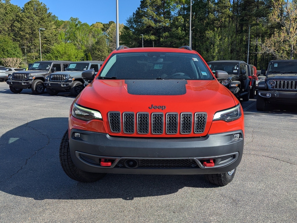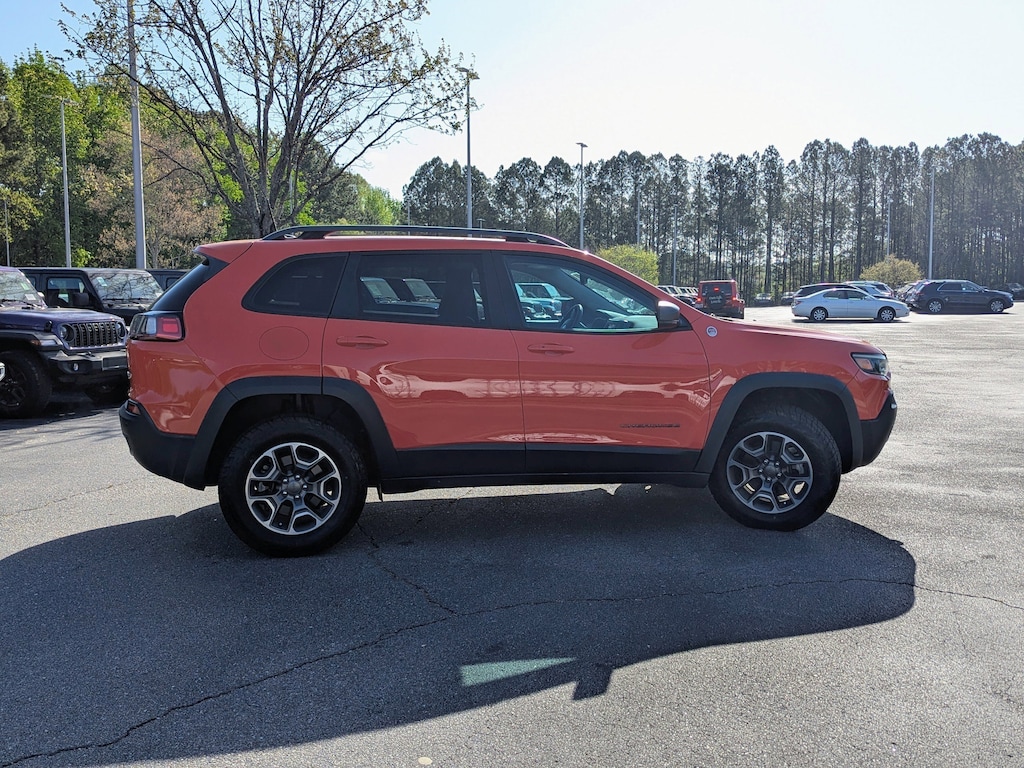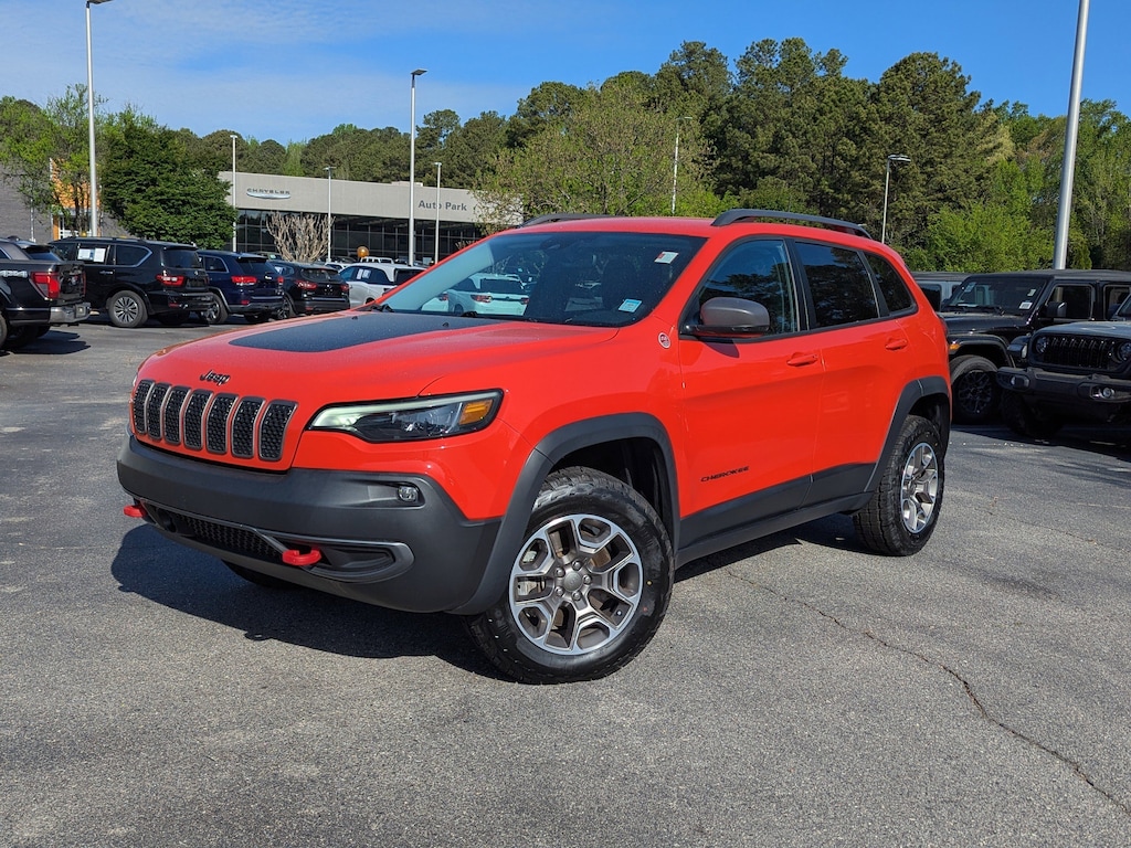 Certified. Spitfire Orange Clearcoat 2021 Jeep Cherokee Trailhawk 4WD 9-Speed Automatic 3.2L V6 Apple CarPlay/Android Auto, Auto-Dimming Rear-View Mirror, Automatic temperature control, Comfort/Convenience Group, Exterior Mirrors w/Memory, Fully automatic headlights, Hands-Free Power Liftgate, Heated front seats, Heated steering wheel, Outside temperature display, ParkView Rear Back-Up Camera, Power Driver/Passenger 4-Way Lumbar Adjust, Power Front Driver/Passenger Seats, Premium Leather Package, Premium Leather Trimmed Bucket Seats, Quick Order Package 27E Trailhawk, Radio: Uconnect 4 w/8.4" Display, Radio/Driver Seat/Exterior Mirrors Memory, Rain sensing wipers, Security Alarm, Universal Garage Door Opener, Ventilated Front Seats.