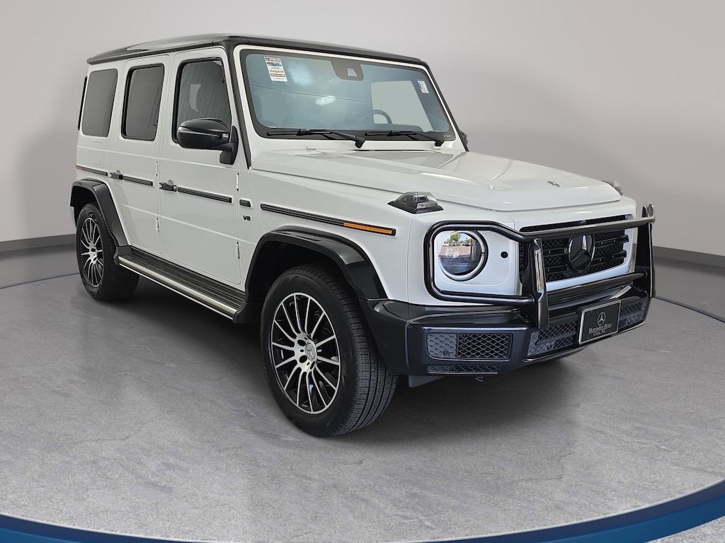Certified. Polar White 2022 Mercedes-Benz G-Class G 550 4MATIC® 4.0L V8 15 Speakers, 4-Wheel Disc Brakes, ABS brakes, Air Conditioning, Alloy wheels, AM/FM radio: SiriusXM, AMG® Floor Mats, AMG® Line, AMG® Sport Exhaust, Apple CarPlay®/Android Auto®, Auto High-beam Headlights, Auto tilt-away steering wheel, Auto-dimming door mirrors, Auto-dimming Rear-View mirror, Automatic temperature control, Black Microfiber Headliner, Bodyside moldings, Brake assist, Brake Calipers w/MB Lettering, Brush Guard in Black, Bumpers: body-color, Child-Seat-Sensing Airbag, Compass, Delay-off headlights, Driver door bin, Driver vanity mirror, Dual front impact airbags, Dual front side impact airbags, Electronic Stability Control, Emergency communication system: Mercedes-Benz Emergency Call Service, Exterior Lettering in Black, Exterior Parking Camera Rear, Exterior Protective Strip in Aluminum Look, Exterior Protective Strip in Pinstripe Look, Flared Wheel Arches, Frameless Rearview Mirror, Front anti-roll bar, Front Bucket Seats, Front Center Armrest, Front dual zone A/C, Front reading lights, Front wheel independent suspension, G manufaktur Interior Package Plus, Garage door transmitter: HomeLink, Genuine wood console insert, Genuine wood dashboard insert, Genuine wood door panel insert, Head restraints memory, Headlight cleaning, Heated door mirrors, Heated front seats, Heated rear seats, Illuminated entry, Knee airbag, Leather Upholstery, Low tire pressure warning, MB Star in Black, Memory seat, Nappa Leather Dashboard, Nappa Leather Multifunction Sports Steering Wheel, Navigation System, Night Package Plus, Occupant sensing airbag, Outside temperature display, Overhead airbag, Overhead console, Panic alarm, Passenger door bin, Passenger vanity mirror, Power adjustable front head restraints, Power door mirrors, Power driver seat, Power Heated Front Seats, Power moonroof, Power passenger seat, Power steering, Power windows, Radio data system, Radio: COMAND® Online Navigation, Rain sensing wipers, Rear air conditioning, Rear anti-roll bar, Rear fog lights, Rear reading lights, Rear seat center armrest, Rear side impact airbag, Rear window defroster, Rear window wiper, Red Seat Belts, Remote keyless entry, Roof in Obsidian Black, Seat Comfort Package, Security system, Spare Wheel Cover in Obsidian Black, Speed control, Speed-sensing steering, Split folding rear seat, Steering wheel memory, Steering wheel mounted audio controls, Tachometer, Telescoping steering wheel, Tilt steering wheel, Traction control, Trip computer, Turn signal indicator mirrors, Variably intermittent wipers, Wheel Arches and Bumpers in Black, Wheels: 20" AMG® Multi-Spoke w/Black Accents.
