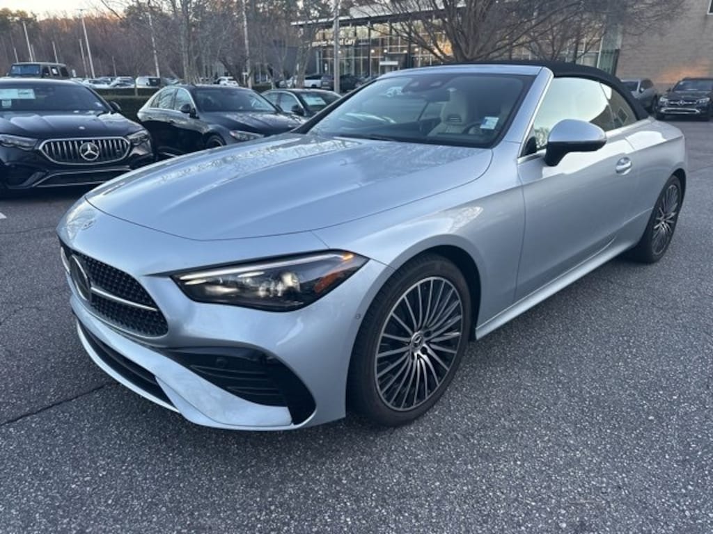 Certified. Cirrus Silver Metallic 2024 Mercedes-Benz CLE CLE 450 4MATIC® I6 I6, 15 Speakers, 4-Wheel Disc Brakes, ABS brakes, Active Lane Change Assist, Active Speed Limit Assist, Air Conditioning, Alloy wheels, AM/FM radio: SiriusXM w/360L, Apple CarPlay®/Android Auto®, Auto High-beam Headlights, Auto tilt-away steering wheel, Auto-dimming door mirrors, Auto-dimming Rear-View mirror, Automatic temperature control, BAS PLUS w/Cross-Traffic Assist, Brake assist, Bumpers: body-color, Child-Seat-Sensing Airbag, Compass, Convertible roof lining, Convertible roof wind blocker, Delay-off headlights, DIGITAL LIGHT w/Projections, DISTRONIC PLUS® w/Steering Assist & Stop & Go Assist, Driver Assistance Package, Driver Assistance Package Plus, Driver door bin, Driver vanity mirror, Dual front impact airbags, Dual front side impact airbags, Electronic Stability Control, Emergency communication system: Mercedes-Benz Emergency Call Service, Exterior Parking Camera Rear, Four wheel independent suspension, Front anti-roll bar, Front Bucket Seats, Front Center Armrest, Front dual zone A/C, Front reading lights, Front Sport Seats w/Memory, Fully automatic headlights, Garage door transmitter: HomeLink, Glass rear window, GUARD 360 w/Picture Taking Functionality, Head restraints memory, Head-Up Display, Heated door mirrors, Heated Front Seats, Heated front seats, Heated Steering Wheel, Illuminated entry, Integrated roll-over protection, Knee airbag, Leather steering wheel, Low tire pressure warning, MB-Tex Seat Trim, MBUX Augmented Reality for Navigation, MBUX Entertainment Plus, Memory seat, Navigation system: MBUX, Occupant sensing airbag, Outside temperature display, Overhead airbag, Overhead console, Panic alarm, Parking Package w/360 Camera, Passenger door bin, Passenger vanity mirror, Pinnacle Trim, Power adjustable front head restraints, Power convertible roof, Power door mirrors, Power driver seat, Power passenger seat, Power steering, Power windows, PRE-SAFE® Brake w/Pedestrian Recognition, PRE-SAFE® Impulse Side, PRE-SAFE® PLUS, Radio data system, Rain sensing wipers, Rear anti-roll bar, Rear fog lights, Rear window defroster, Remote keyless entry, Route-Based Speed Adaptation, Security system, Speed control, Speed-sensing steering, Split folding rear seat, Sport steering wheel, Steering wheel memory, Steering wheel mounted audio controls, Tachometer, Telescoping steering wheel, Tilt steering wheel, Traction control, Trip computer, Turn signal indicator mirrors, Variably intermittent wipers, Ventilated Front Seats, Wheels: 19" AMG® Multispoke w/Black Accents.