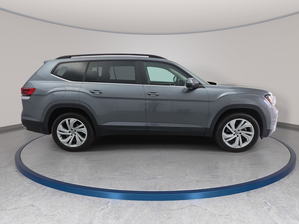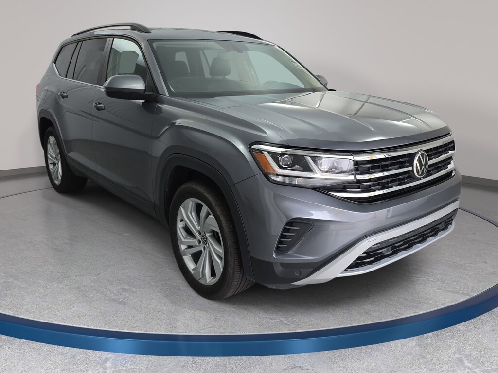 Certified. Platinum Gray Metallic 2022 Volkswagen Atlas 3.6L V6 SE w/Technology FWD 8-Speed Automatic with Tiptronic 3.6L VR6 3rd row seats: split-bench, Fully automatic headlights, Heated Comfort Front Bucket Seats, Illuminated entry, Perforated V-Tex Leatherette Seating Surfaces, Power Liftgate, Radio: MIB3 Composition Media w/8" Touchscreen, Rain sensing wipers, Wheels: 20" x 8J 5-Spoke Silver Painted Alloy.