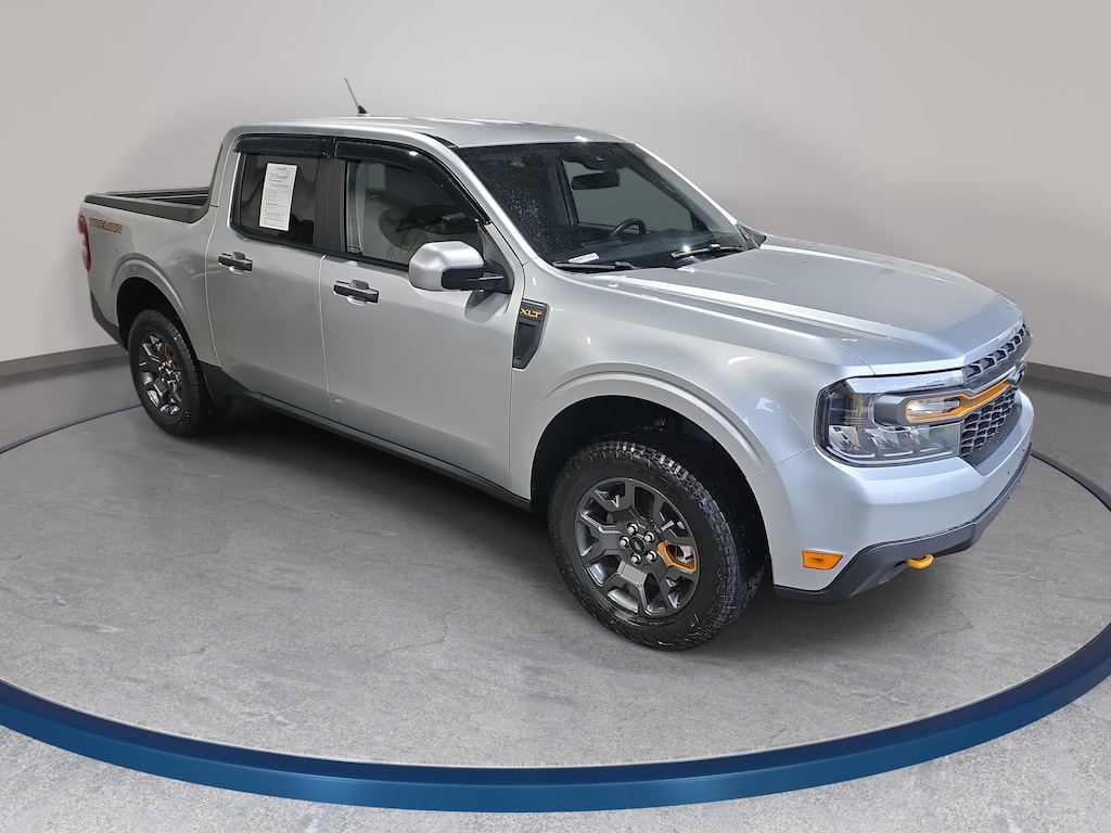 Iconic Silver Metallic 2023 Ford Maverick XLT AWD 8-Speed Automatic EcoBoost 2.0L I4 GTDi DOHC Turbocharged VCT LOCAL TRADE IN, HEATED SEATS, ALL WHEEL DRIVE, SMART KEY W PUSH BUTTON START, APPLE CARPLAY & ANDROID AUTO, NO ACCIDENTS, MUST SEE!, BACK UP CAMERA, 400W Inverter w/USB Console Rear, 4G LTE Wi-Fi Hotspot Removal, ABS brakes, Advanced 4WD w/Twin Clutch Rear Drive Unit, Air Conditioning, Apple CarPlay/Android Auto, Auto High-beam Headlights, Automatic temperature control, Black Chrome Headlamps, Black Chrome Taillamps, Bumpers: body-color, Compass, Electronic Stability Control, Exterior Parking Camera Rear, Fender Vent w/Tremor Orange Accents, Four wheel independent suspension, Front & Rear Floor Liners w/Front Carpet Floor Mats, Front All Weather Floor Mats, Front Bucket Seats, Front Bumper w/Improved Approach Angle, Front Tow Hooks w/Tremor Orange Painted Accent, Fully automatic headlights, Heated Mirror w/Body-Color Skull Caps, Heated Seats, Heavy-Duty Transmission Cooler, LED Box Lighting, Off-Road Screen in Cluster, Off-Road Tuned Suspension, Outside temperature display, Power steering, Power windows, Radio: AM/FM Stereo w/6 Speakers, Rear seat center armrest, Remote keyless entry, Remote Start System, Soft Vinyl Wrapped Heated Steering Wheel, Speed-sensing steering, Steering wheel mounted audio controls, Telescoping steering wheel, Tilt steering wheel, Traction control, Trail Control, Trailer Hitch Receiver w/4-Pin Connector, Tremor Box Decals & Badges, Tremor Instrument Panel & Floor Console Accents, Tremor Off-Road Package, Unique Front & Rear Ford Logos, Unique Style Upper Grille w/Tremor Orange Accents, Wheels: 17 Machined-Face Tarnished Dark Aluminum, Windshield Wiper De-Icer, XLT Luxury Package.