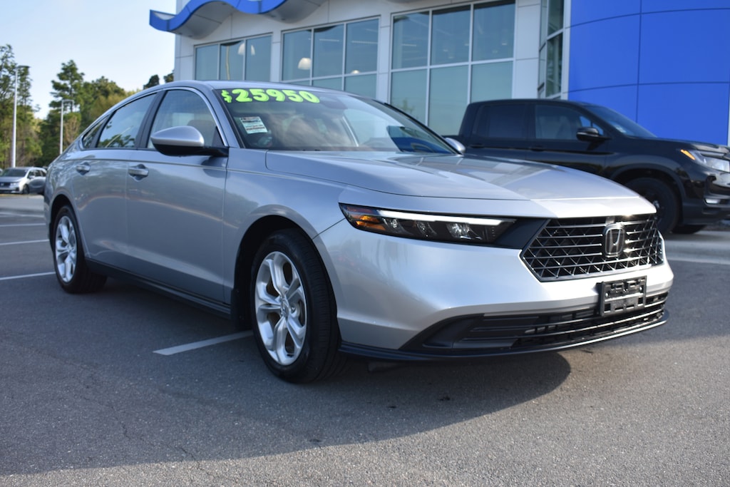 CARFAX One-Owner. Certified. Lunar Silver Metallic 2023 Honda Accord LX FWD CVT 1.5T I4 DOHC 16V Turbocharged VTEC 4 Speakers, 4-Wheel Disc Brakes, ABS brakes, Adaptive Cruise Control: Adaptive Cruise Control (ACC) with Low-Speed Follow, Air Conditioning, Alloy wheels, AM/FM radio, Apple CarPlay/Android Auto, Auto High-beam Headlights, Automatic temperature control, Brake assist, Bumpers: body-color, Compass, Delay-off headlights, Dual front impact airbags, Dual front side impact airbags, Emergency communication system: HondaLink Assist, Exterior Parking Camera Rear, Fabric Seat Trim, Four wheel independent suspension, Front anti-roll bar, Fully automatic headlights, Illuminated entry, Knee airbag, Lane departure: Lane Keeping Assist System (LKAS) active, Low tire pressure warning, Occupant sensing airbag, Outside temperature display, Overhead airbag, Panic alarm, Power door mirrors, Power steering, Power windows, Radio data system, Radio: 160-Watt AM/FM Audio System, Rear anti-roll bar, Rear seat center armrest, Rear side impact airbag, Rear window defroster, Remote keyless entry, Security system, Speed control, Speed-sensing steering, Speed-Sensitive Wipers, Steering wheel mounted audio controls, Tachometer, Telescoping steering wheel, Tilt steering wheel, Traction control, Trip computer, Variably intermittent wipers, Wheels: 17" x 7.5" Blade Silver.