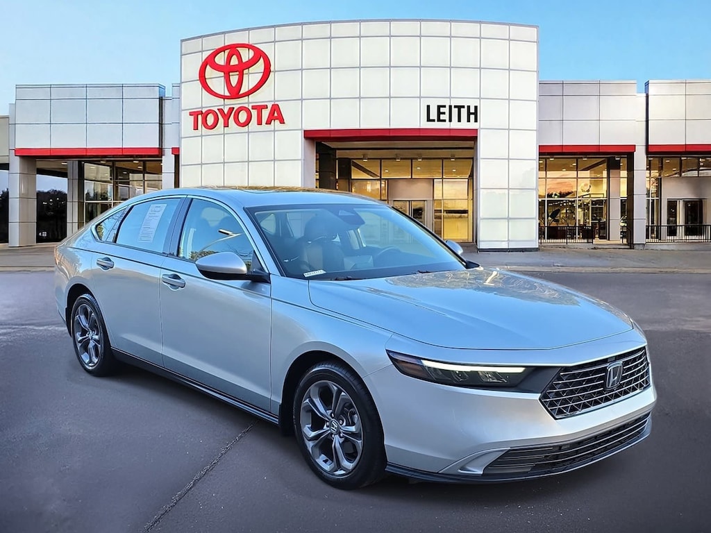 Clean CARFAX. CARFAX One-Owner. Solar Silver Metallic 2024 Honda Accord EX FWD CVT 1.5T I4 DOHC 16V Turbocharged VTEC Clean Carfax 1 Owner/No Accident Vehicle, LOCAL TRADE IN, BACK UP CAMERA, HEATED SEATS, BLIND SPOT MONITOR, APPLE CARPLAY & ANDROID AUTO, 1-OWNER, NO ACCIDENTS, MUST SEE!, Black w/Fabric Seat Trim, 8 Speakers, ABS brakes, Adaptive Cruise Control: Adaptive Cruise Control (ACC) with Low-Speed Follow, Air Conditioning, Apple CarPlay/Android Auto, Auto High-beam Headlights, Auto-dimming Rear-View mirror, Automatic temperature control, Blind Spot Information (BSI) System warning, Compass, Electronic Stability Control, Exterior Parking Camera Rear, Fabric Seat Trim, Four wheel independent suspension, Front dual zone A/C, Fully automatic headlights, Heated Front Bucket Seats, Lane departure: Lane Keeping Assist System (LKAS) active, Power driver seat, Power moonroof, Power steering, Power windows, Radio: 180-Watt AM/FM Audio System, Rear seat center armrest, Rear window defroster, Steering wheel mounted audio controls, Telescoping steering wheel, Traction control, Wheels: 17 x 7.5 Pewter Gray.