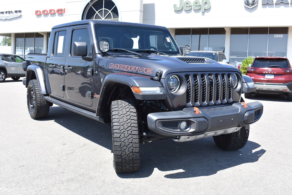 Clean CARFAX. CARFAX One-Owner. Granite Crystal Metallic Clearcoat 2023 Jeep Gladiator Mojave 4WD 8-Speed Automatic 3.6L V6 24V VVT 240 Amp Alternator, 4-Wheel Disc Brakes, 4.10 Rear Axle Ratio, 9 Speakers, 97 MPH Vehicle Max Speed Calibration, ABS brakes, Air Conditioning, Alloy wheels, AM/FM radio: SiriusXM, Apple CarPlay/Android Auto, Auto-dimming Rear-View mirror, Automatic temperature control, Auxiliary Switch Group, Auxiliary Switches, Bluetooth Wireless Speaker, Body Color 3-Piece Hard Top, Body Color Fender Flares (2-Piece), Brake assist, Class IV Receiver Hitch, Cold Weather Group, Compass, Daytime Running Lamps LED Accents, Delay-off headlights, Dual front impact airbags, Dual front side impact airbags, Electronic Stability Control, Emergency communication system, Freedom Panel Storage Bag, Front anti-roll bar, Front dual zone A/C, Front fog lights, Front LED Fog Lamps, Fully automatic headlights, Garage door transmitter, Heated door mirrors, Heated Front Seats, Heated Steering Wheel, Heavy Duty Suspension w/Gas Shocks, Heavy-Duty Engine Cooling, Illuminated entry, Integrated Off-Road Camera, Integrated roll-over protection, Leather steering wheel, LED Lighting Group, LED Park Turn Lamps, LED Premium Reflector Headlamps, LED Taillamps, Low tire pressure warning, MOPAR Spray In Bedliner, Navigation System, No Soft Top, Occupant sensing airbag, Outside temperature display, Panic alarm, ParkView Rear Back-Up Camera, Power door mirrors, Power steering, Power windows, Premium Cloth Seats w/Sport Bolsters, Quick Order Package 24D Mojave, Radio data system, Radio: Uconnect 4C Nav w/8.4" Display, Rear anti-roll bar, Rear reading lights, Rear Sliding Window, Rear Window Defroster, Remote keyless entry, Security system, Speed control, Split folding rear seat, Steering wheel mounted audio controls, Tachometer, Telescoping steering wheel, Tilt steering wheel, Traction control, Trailer Hitch Zoom, Trailer Tow Package, Trip computer, Variably intermittent wipers, Voltmeter, Wheels: 17" x 7.5" Low Gloss Black Aluminum.