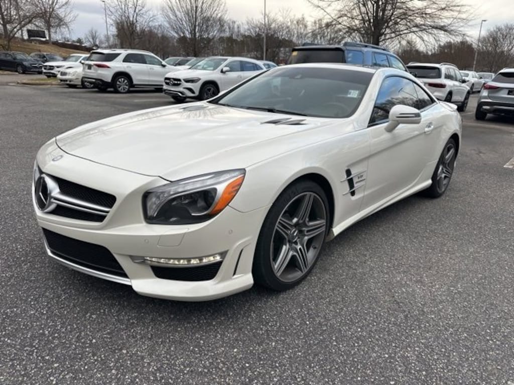 Diamond White Metallic 2013 Mercedes-Benz SL-Class SL 63 AMG® 5.5L V8 Direct-Injection BiTurbo Black w/AMG Premium Leather Upholstery, 14 Speakers, 19" AMG® Twin 5-Spoke Wheels, 4-Wheel Disc Brakes, ABS brakes, Active Blind Spot Assist, Active Lane Keeping Assist, Active Multicontour Seats, Active Ventilated Front Seats, Adaptive suspension, Air Conditioning, AIRSCARF® Ventilated Headrest, AM/FM radio: SiriusXM, AMG® Premium Leather Upholstery, Anti-whiplash front head restraints, Auto High-beam Headlights, Auto tilt-away steering wheel, Auto-dimming door mirrors, Auto-dimming Rear-View mirror, Auto-leveling suspension, Automatic temperature control, Brake assist, Bumpers: body-color, CD player, Child-Seat-Sensing Airbag, Comfort Package Code, Convertible HardTop, Convertible roof lining, Convertible roof wind blocker, Delay-off headlights, DISTRONIC PLUS® w/Pre-Safe Brake, Driver Assistance Package, Driver door bin, Driver vanity mirror, Dual front impact airbags, Dual front side impact airbags, DVD-Audio, Electronic Stability Control, Emergency communication system: mbrace2, Four wheel independent suspension, Front Bucket Seats, Front Center Armrest, Front dual zone A/C, Front fog lights, Front reading lights, Garage door transmitter: Homelink, harman/kardon® Logic 7® Surround Sound System, harman/kardon® Speakers, Head restraints memory, Headlight cleaning, Heated door mirrors, Heated front seats, Heated Seats, High intensity discharge headlights: Bi-Xenon, HVAC memory, Illuminated entry, Integrated roll-over protection, iPod/MP3 Media Interface, Knee airbag, Leather Shift Knob, Low tire pressure warning, Memory seat, Multicontour Seats, Navigation system: COMAND®, Occupant sensing airbag, Outside temperature display, Overhead airbag, Panic alarm, PARKTRONIC w/Active Parking Assist, Passenger door bin, Passenger vanity mirror, Power adjustable front head restraints, Power convertible roof, Power door mirrors, Power driver seat, Power passenger seat, Power steering, Power windows, Premium 1 Package, Premium audio system: COMAND®, Radio data system, Radio: COMAND® System w/Navigation, Rain sensing wipers, Rear fog lights, Rear window defroster, Rear-View Camera, Remote keyless entry, Security system, SIRIUS XM Satellite Radio, Speed control, Speed-sensing steering, Spoiler, Sport steering wheel, Steering wheel memory, Steering wheel mounted audio controls, Tachometer, Telescoping steering wheel, Tilt steering wheel, Traction control, Trip computer, Turn signal indicator mirrors, Variably intermittent wipers, Weather band radio.