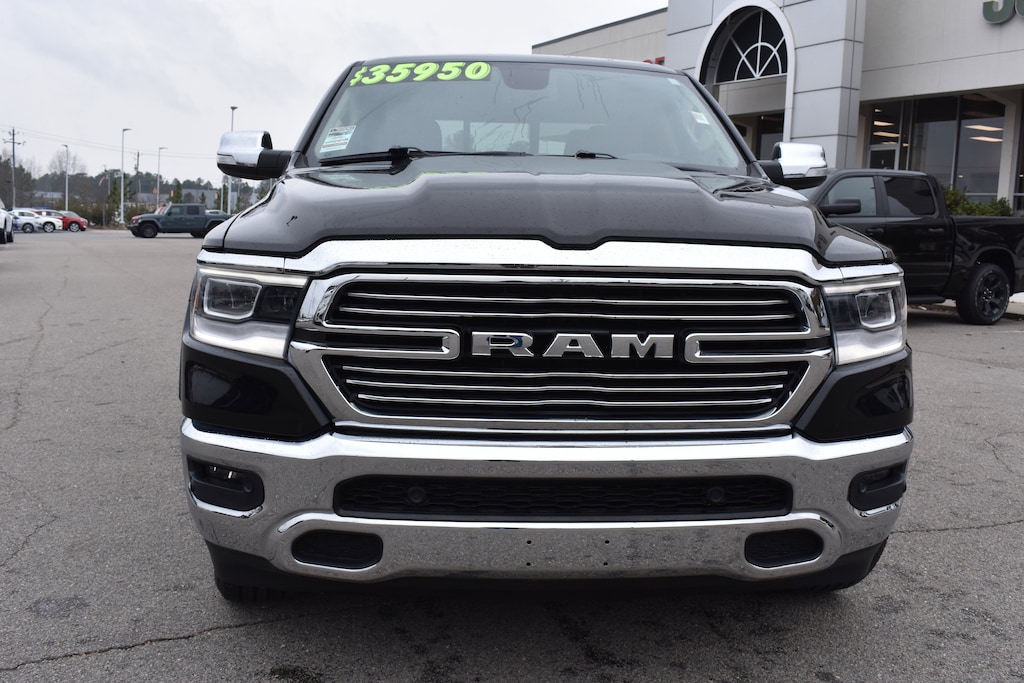 Diamond Black Crystal Pearlcoat 2019 Ram 1500 Laramie 4WD 8-Speed Automatic HEMI 5.7L V8 Multi Displacement VVT 10 Speakers, 3 Rear Seat Head Restraints, 3.21 Rear Axle Ratio, 4 Adjustable Cargo Tie-Down Hooks, 4 Way Front Headrests, 4-Wheel Disc Brakes, 48V Belt Starter Generator, 8.4" Touchscreen Display, ABS brakes, Adjustable pedals, Air Conditioning, Alloy wheels, AM/FM radio: SiriusXM, Apple CarPlay, Apple CarPlay/Android Auto, Audio memory, Auto High Beam Headlamp Control, Auto-dimming door mirrors, Auto-dimming Rear-View mirror, Automatic temperature control, Bed Utility Group, Blind Spot & Cross Path Detection, Brake assist, Bumpers: chrome, Compass, Delay-off headlights, Dome Dual LED Reading Lamp, Driver Seat Memory, Dual front impact airbags, Dual front side impact airbags, Dual-Pane Panoramic Sunroof, Electronic Stability Control, Foam Bottle Insert (Door Trim Panel), Front anti-roll bar, Front Center Armrest w/Storage, Front dual zone A/C, Front fog lights, Front Seat Back Map Pockets, Front wheel independent suspension, Fully automatic headlights, Garage door transmitter, Google Android Auto, GPS Antenna Input, Heated door mirrors, Heated Front Seats, Heated front seats, Heated Steering Wheel, Heated steering wheel, Illuminated entry, Integrated Center Stack Radio, Laramie Level 1 Equipment Group, Leather steering wheel, Leather Trim 40/20/40 Bench Seat, LED Dome/Reading Lamp, Low tire pressure warning, Memory seat, Occupant sensing airbag, Outside temperature display, Overhead airbag, Panic alarm, ParkSense Front/Rear Park Assist w/Stop, ParkView Rear Back-Up Camera, Passenger vanity mirror, Pedal memory, Pick-Up Box Lighting, Power 4-Way Driver Lumbar Adjust, Power 4-Way Passenger Lumbar Adjust, Power 8-Way Driver & Passenger Seats, Power door mirrors, Power driver seat, Power passenger seat, Power steering, Power windows, Quick Order Package 25H Laramie, Radio data system, Radio: Uconnect 4 w/8.4" Display, Rain Sensitive Windshield Wipers, Rear 60/40 Folding Split Recline Seat, Rear anti-roll bar, Rear seat center armrest, Rear step bumper, Rear window defroster, Remote keyless entry, Remote Tailgate Release, Security system, Single Disc Remote CD Player, SiriusXM Satellite Radio, Speed control, Split folding rear seat, Spray In Bedliner, Steering wheel mounted audio controls, Tachometer, Tailgate Ajar Warning Lamp, Telescoping steering wheel, Tilt steering wheel, Traction control, Trip computer, Turn signal indicator mirrors, Variably intermittent wipers, Ventilated Front Seats, Ventilated front seats, Voltmeter, Wheels: 20" x 9" Premium Paint/Polished.
