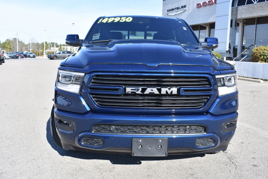 Clean CARFAX. CARFAX One-Owner. Patriot Blue Pearlcoat 2024 Ram 1500 Laramie 4WD 8-Speed Automatic HEMI 5.7L V8 Multi Displacement VVT eTorque 10 Speakers, 2nd Row In Floor Storage Bins, 3 Rear Seat Head Restraints, 3.21 Rear Axle Ratio, 4 Way Front Headrests, 4-Wheel Disc Brakes, 48V Belt Starter Generator, 4G LTE Wi-Fi Hot Spot, ABS brakes, Air Conditioning, Alloy wheels, AM/FM radio: SiriusXM with 360L, Anti-Spin Differential Rear Axle, Apple CarPlay, Apple CarPlay/Android Auto, Audio memory, Auto High Beam Headlamp Control, Auto-dimming door mirrors, Auto-Dimming Exterior Driver Mirror, Auto-dimming Rear-View mirror, Automatic temperature control, Black Interior Accents, Blind Spot & Cross Path Detection, Body Color Exterior Mirrors, Body Color Front Bumper, Body Color Premium Power Mirrors, Body Color Rear Bumper w/Step Pads, Brake assist, Bucket Seats, Bumpers: chrome, Chrome Exterior Mirrors, Class IV Receiver Hitch, Compass, Connected Travel & Traffic Services, Connectivity - US/Canada, Convex Wide-Angle Exterior Mirror Insert, Delay-off headlights, Driver Seat Memory, Dual front impact airbags, Dual front side impact airbags, Electric Shift-On-Demand Transfer Case, Electronic Stability Control, Exterior Mirrors Courtesy Lamps, Exterior Mirrors w/Heating Element, Exterior Mirrors w/Memory, Exterior Mirrors w/Supplemental Signals, Foam Bottle Insert (Door Trim Panel), For Details, Visit DriveUconnect.com, For More Info, Call 800-643-2112, Front anti-roll bar, Front Door Accent Lighting, Front dual zone A/C, Front fog lights, Front LED Fog Lamps, Front wheel independent suspension, Fully automatic headlights, Garage door transmitter, Global Telematics Box Module (TBM), Google Android Auto, GPS Navigation, Grille Surround 3 Body Color Tex 2 Black, HD Radio, Heated door mirrors, Heated Front Seats, Heated front seats, Heated Second Row Seats, Heated Steering Wheel, Heated steering wheel, Illuminated entry, Integrated Voice Command w/Bluetooth, Laramie Level 1 Equipment Group, Leather steering wheel, Leather Trim 40/20/40 Bench Seat, Leather Trimmed Bucket Seats, LED Reflector Headlamps, Low tire pressure warning, Memory seat, MOPAR Front & Rear Rubber Floor Mats, Navigation System, Occupant sensing airbag, Overhead airbag, Panic alarm, ParkSense Front/Rear Park Assist w/Stop, ParkSense Front/Rear Park Assist w/Stop (DISC), ParkView Rear Back-Up Camera, Passenger door bin, Power 2-Way Driver Lumbar Adjust, Power 2-Way Passenger Lumbar Adjust, Power 8-Way Driver & Passenger Seats, Power Adjustable Pedals w/Memory, Power door mirrors, Power driver seat, Power passenger seat, Power steering, Power windows, Power-Folding Mirrors, Quick Order Package 27H Laramie, Radio data system, Radio: Uconnect 5 Nav w/12.0" Display, Rain Sensitive Windshield Wipers, RAM Grille Badge - Chrome, Rear 60/40 Folding Seat, Rear anti-roll bar, Rear Door Accent Lighting, Rear Power Sliding Window, Rear seat center armrest, Rear step bumper, Rear Window Defroster, Remote keyless entry, Remote Tailgate Release, Security system, SiriusXM Radio Service, SiriusXM w/360L, Speed control, Split folding rear seat, Sport Appearance Package, Sport Performance Hood, Steering wheel mounted audio controls, Tachometer, Telescoping steering wheel, Tilt steering wheel, Traction control, Trailer Brake Control, Trip computer, Turn signal indicator mirrors, USB Host Flip, Variably intermittent wipers, Ventilated Front Seats, Ventilated front seats, Voltmeter, Wheels: 20" x 9" Premium Painted w/Inserts.