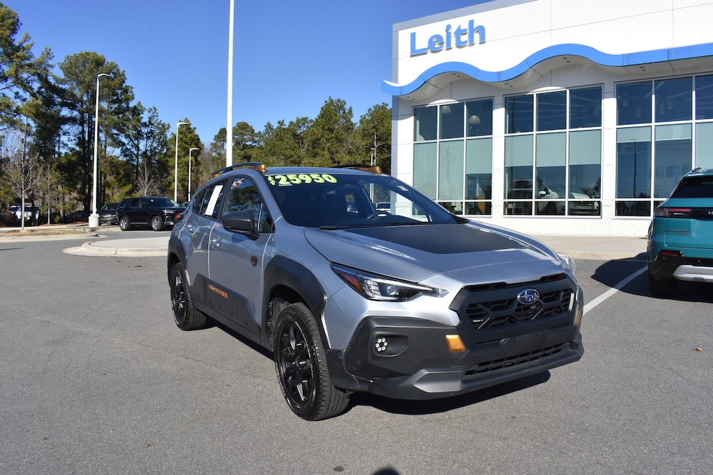 Clean CARFAX. CARFAX One-Owner. Ice Silver Metallic 2024 Subaru Crosstrek Wilderness AWD Lineartronic CVT 2.5L 4-Cylinder DOHC 16V 10-Way Power Driver's Seat, 4-Wheel Disc Brakes, 4.11 Axle Ratio, 6 Speakers, ABS brakes, Air Conditioning, Alloy wheels, AM/FM radio: SiriusXM, Anti-whiplash front head restraints, Auto High-beam Headlights, Automatic temperature control, Brake assist, Bumpers: body-color, Dual front impact airbags, Dual front side impact airbags, Electronic Stability Control, Emergency communication system: STARLINK Safety and Security (Subscription Required), Exterior Parking Camera Rear, Four wheel independent suspension, Front anti-roll bar, Front dual zone A/C, Front fog lights, Fully automatic headlights, harman/kardon Aud & Pwr Moonroof & Pwr Driver Seat, harman/kardon Surround Sound Speaker System, Heated door mirrors, Heated Front Bucket Seats, Heated front seats, Illuminated entry, Knee airbag, Leather Shift Knob, Low tire pressure warning, Occupant sensing airbag, Outside temperature display, Overhead airbag, Panic alarm, Power door mirrors, Power Moonroof, Power steering, Power windows, Radio data system, Radio: Subaru STARLINK 11.6" Multimedia Plus Sys, Rear anti-roll bar, Rear window defroster, Rear window wiper, Remote keyless entry, Security system, Speed control, Speed-sensing steering, Split folding rear seat, Spoiler, STARLINK/Apple CarPlay/Android Auto, Steering wheel mounted audio controls, Tachometer, Telescoping steering wheel, Tilt steering wheel, Traction control, Trip computer, Turn signal indicator mirrors, Variably intermittent wipers, Wheels: 17" x 7.0J Matte Black Aluminum Alloy, Wilderness StarTex Upholstery.