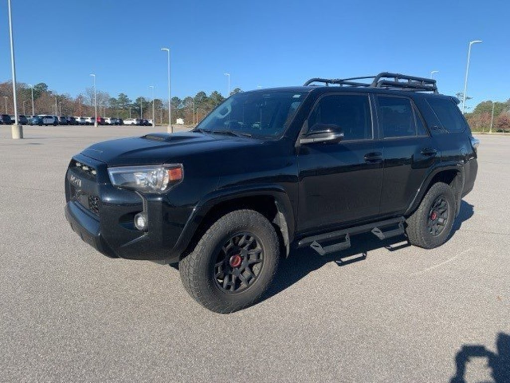 Midnight Black Metallic 2023 Toyota 4Runner TRD Pro 4WD 4.0L V6 DOHC 24V 4WD, Black/Graphite w/SofTex Seat Trim, 15 Speakers, Apple CarPlay/Android Auto, Auto-dimming Rear-View mirror, Dual Zone Auto Climate Control, Fog Lights, Fox Shocks, Garage Door Opener, Heated Front Bucket Seats, Heated Outside Rear-View Mirrors, Moonroof w/Tilt Up & Slide, Multi-Terrain Back Monitor, Navigation System, Power moonroof, Roof Rack, SofTex Seat Trim, Trail Running Boards (PPO) (TMS), TRD Pro All Weather Floor Liner, TRD Pro Badging, TRD Pro Exhaust, TRD Pro Package, TRD Shift Knob, Wheel Locks, Wheels: 17" Matte Black Flow-Formed TRD Alloy.